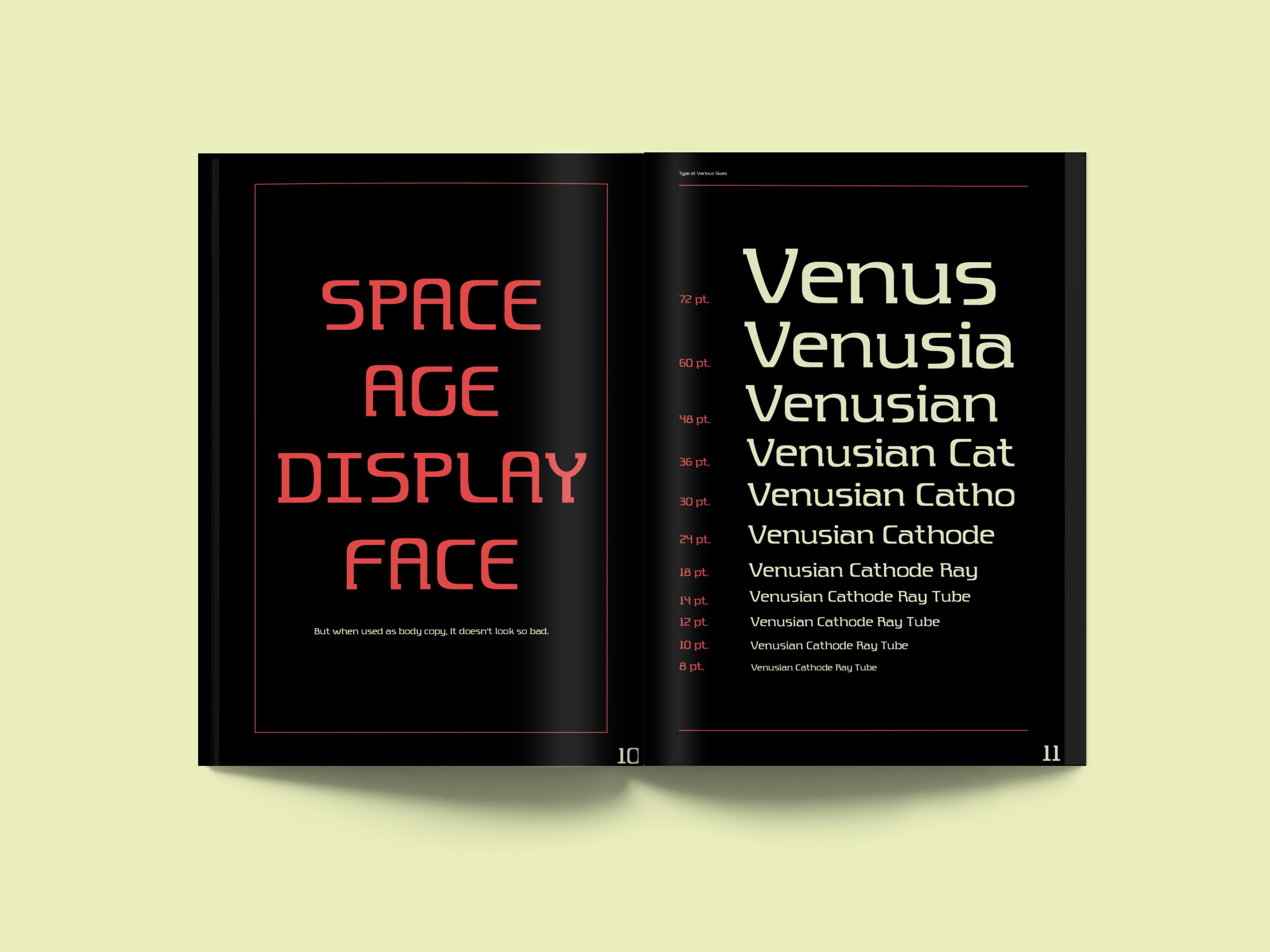 The name Anachronoid is derived from the words “anachronism” and “android” both stemming from the research done on a retro future aesthetic and the idea of the space age. Android more specifically speaks to the nature of the type face in that it has almost machined edges juxtaposed with the organic interior shapes.