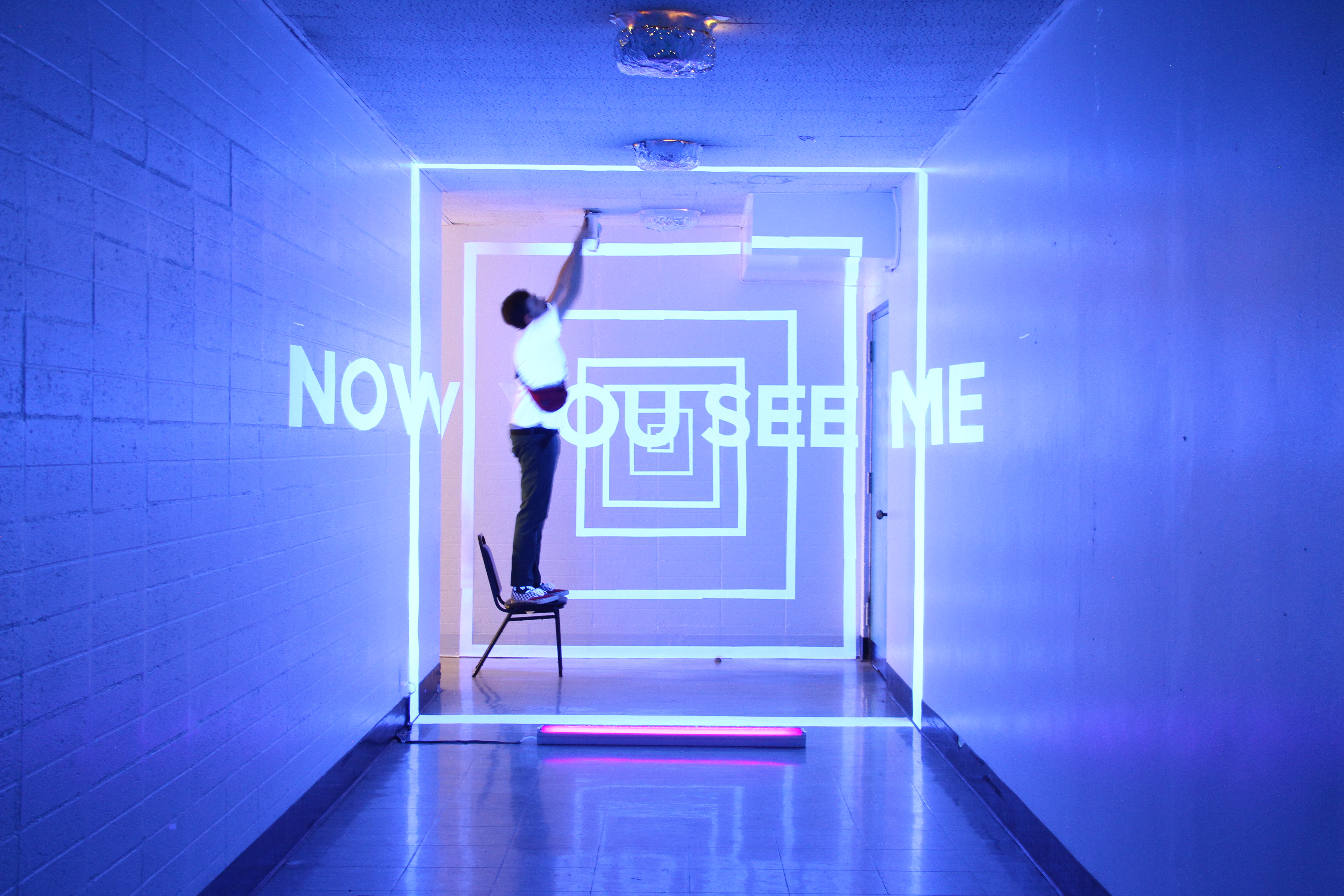 Above is the project entitled “Deception” where an immersive experience was to be created, in this case using a blacklight and paper. This allowed viewers to walk into the scene where it appeared to be projected on the walls.